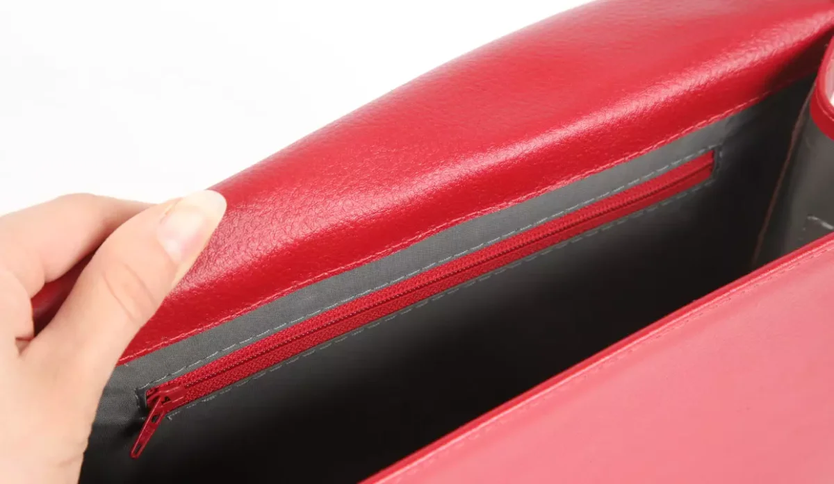 - Su interior cuenta con un compartimento principal con cierre de broches y uno pequeño con zipper.