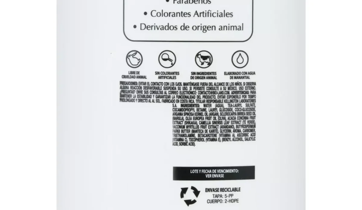 • No contiene: sal, lauril sulfato de sodio, parabenos, colorantes artificiales, ácido esteárico, colesterol ni otros derivados o grasas de origen animal, vitaminas sintéticas.