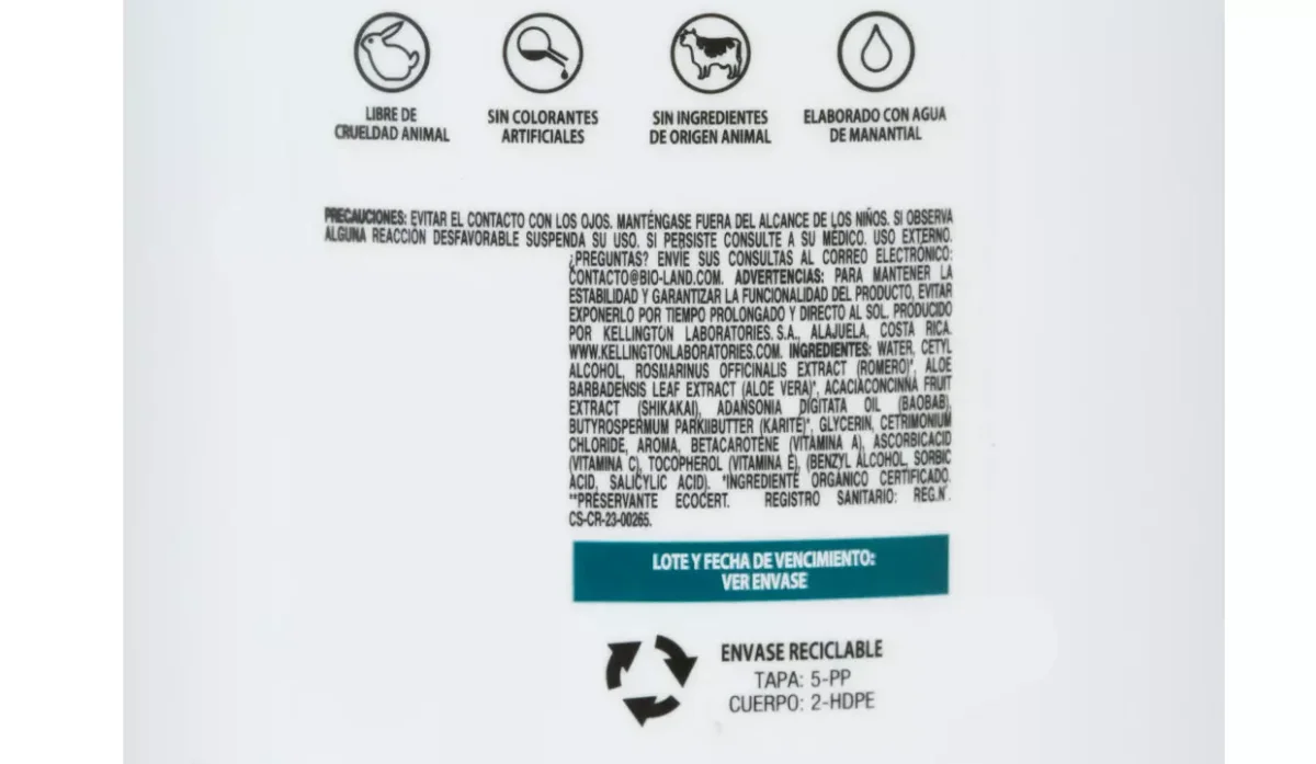- No contiene: sal, siliconas, lauril sulfato de sodio, parabenos, colorantes artificiales, derivados de origen animal.