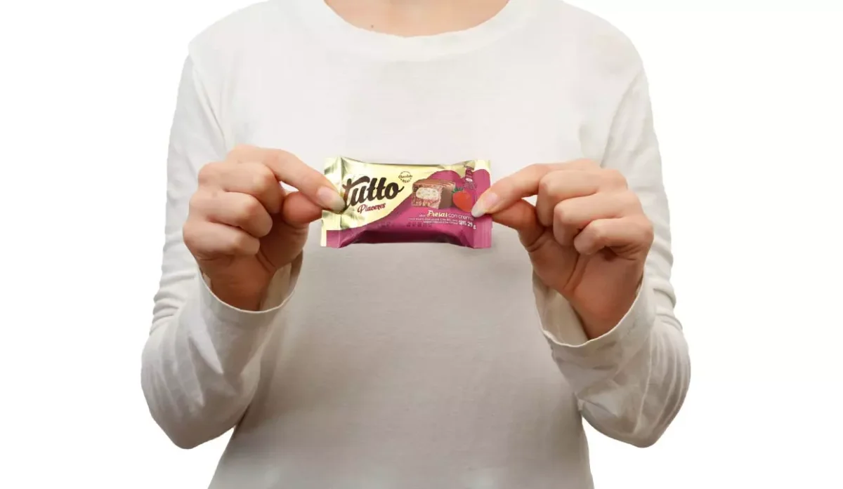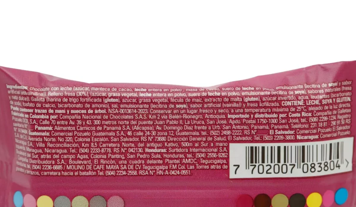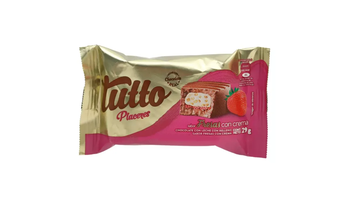 - Chocolate con leche, con relleno sabor a fresas con crema.