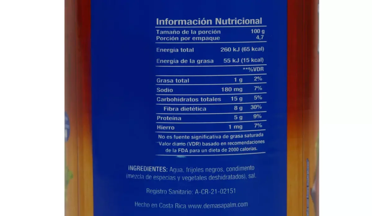 - Agua, frijoles negros, condimento, mezcla de especias y vegetales deshidratados y sal.