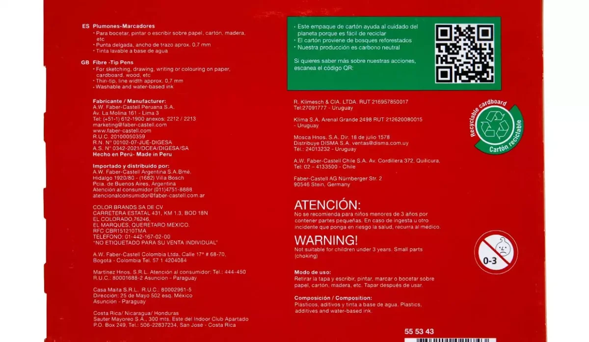 - La tinta es lavable a base de agua.