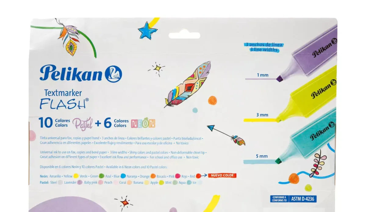 - Neón: amarillo, verde, azul, naranja, rosado y rojo.