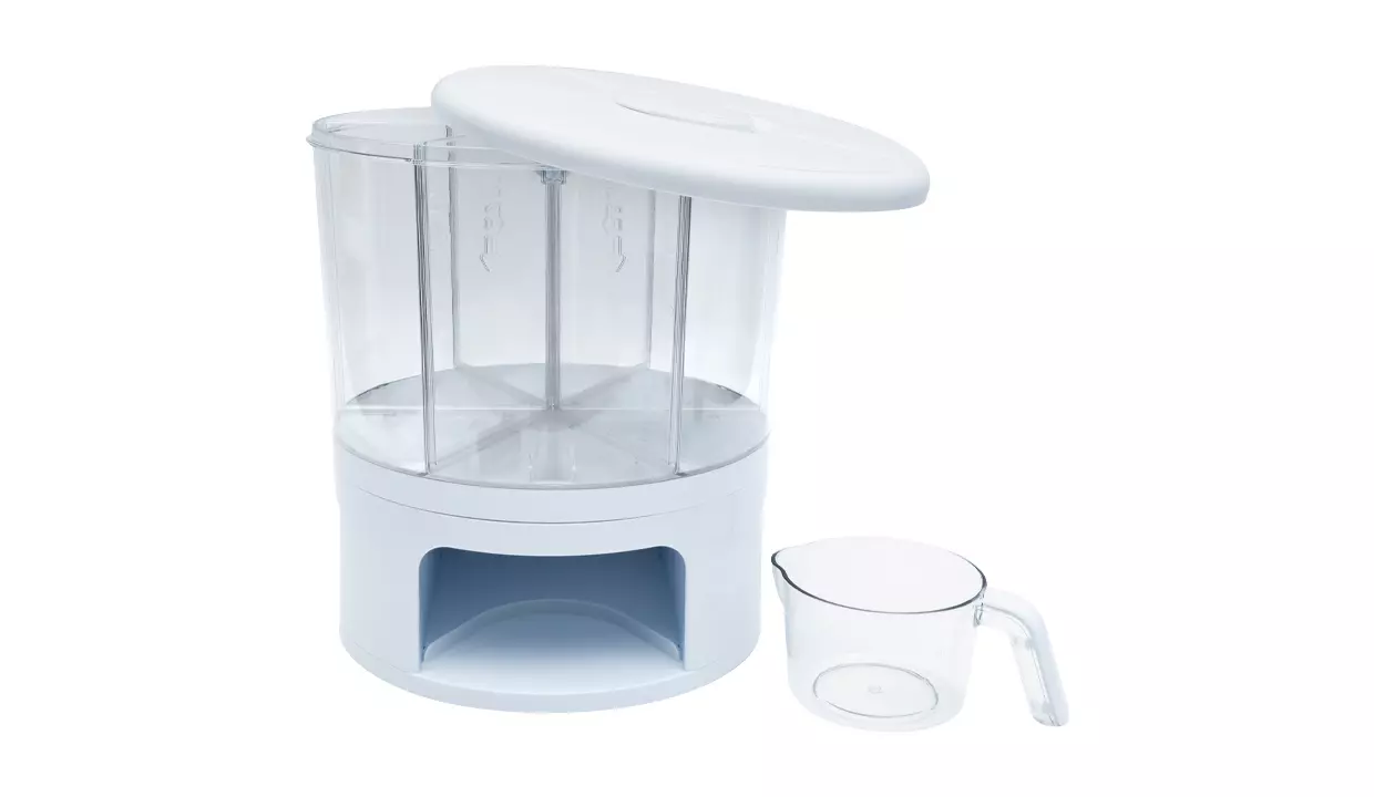 - Permite un acceso rápido con un simple empuje, mientras que el mango de fácil agarre del tazón facilita su manejo sin complicaciones.