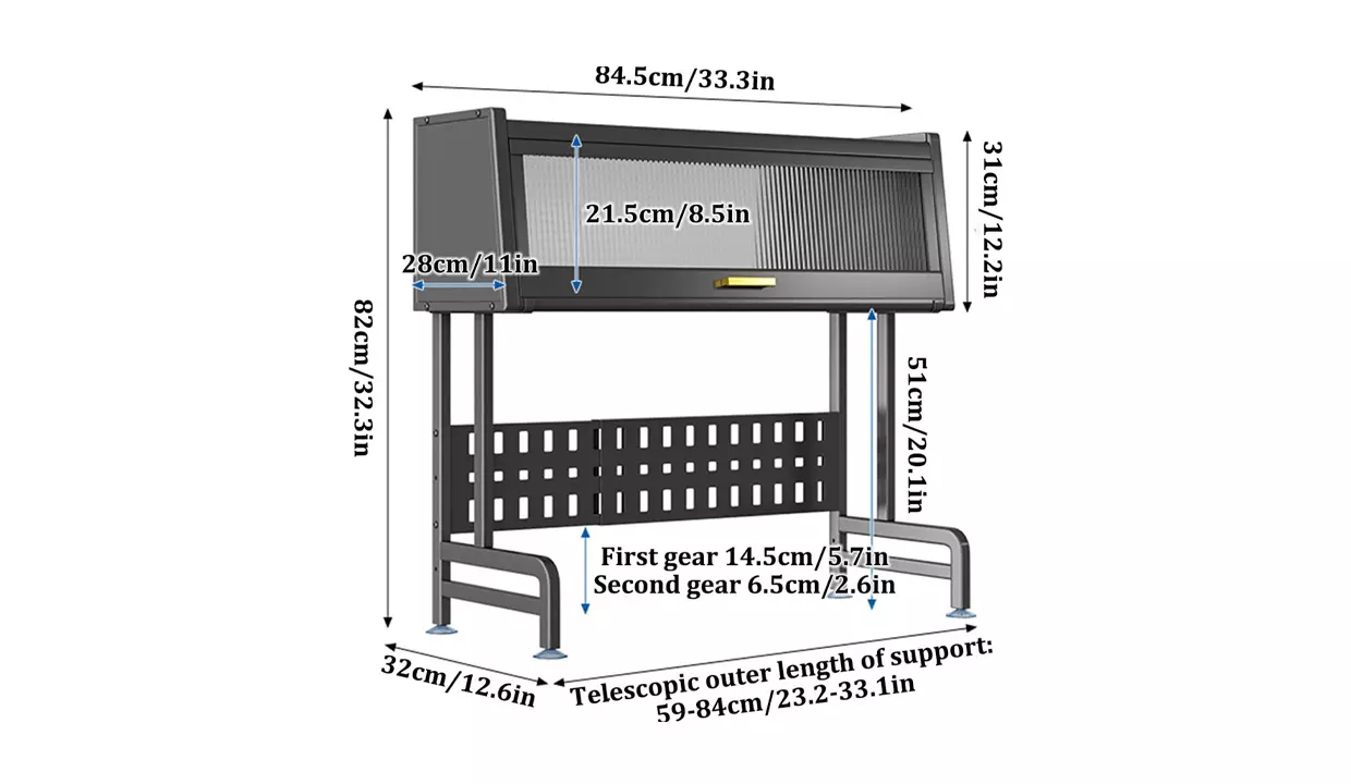 - Escurridor: 32 cm de ancho x 84,5 cm de largo x 82 cm de alto.