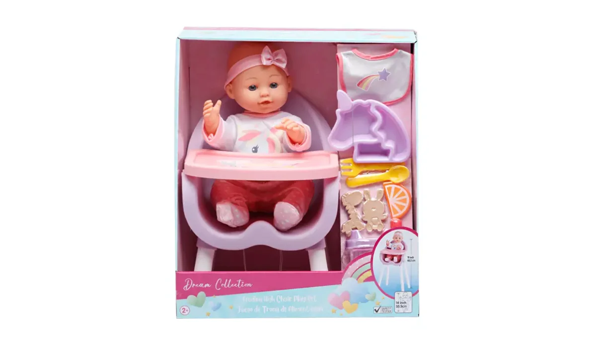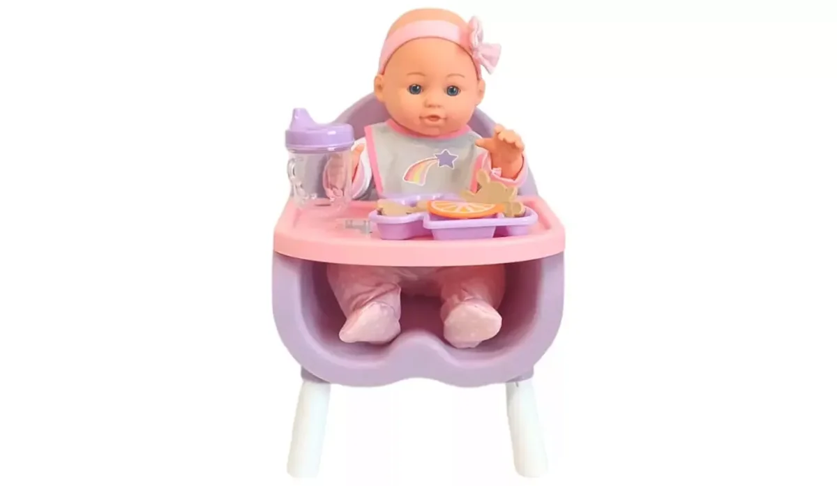 - Diviértete alimentando a tu pequeña bebé que incluye todo un kit y una silla especial para la hora de la comida.
