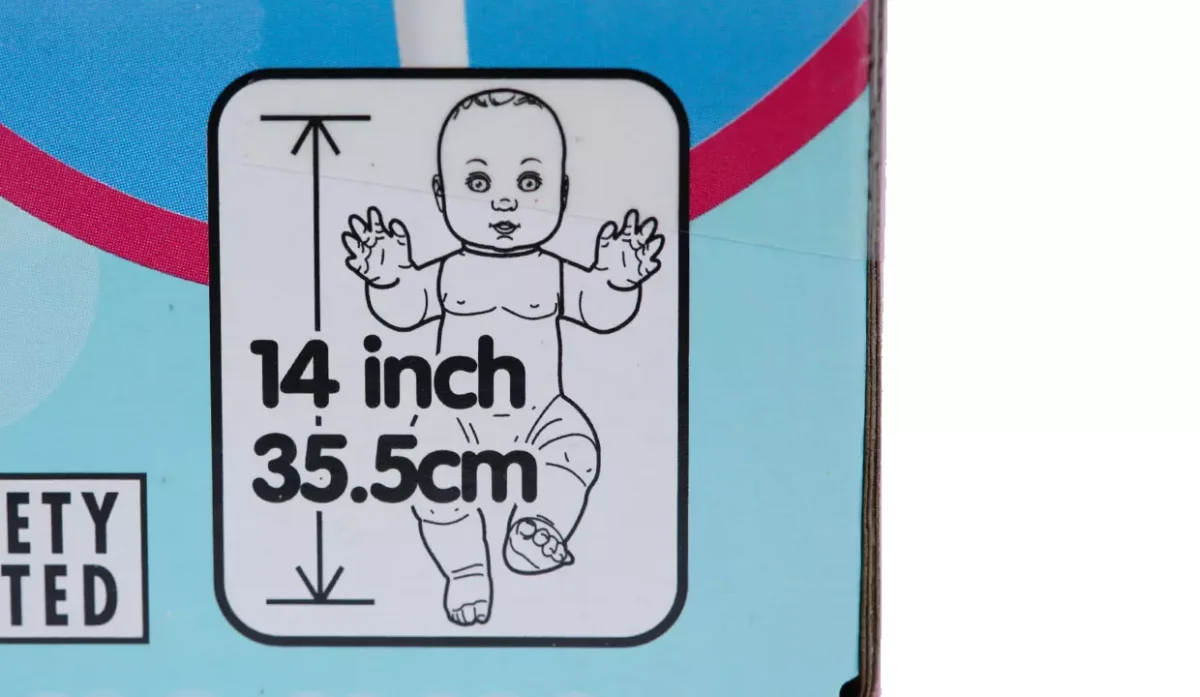 - Bebé: 35.5 cm de alto (14 pulgadas).