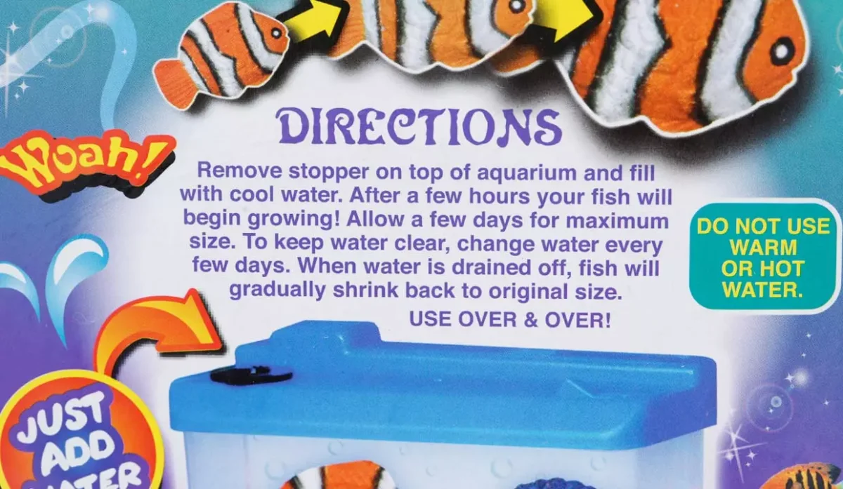 - Cuando se drena el agua, los peces vuelven gradualmente a su tamaño original.