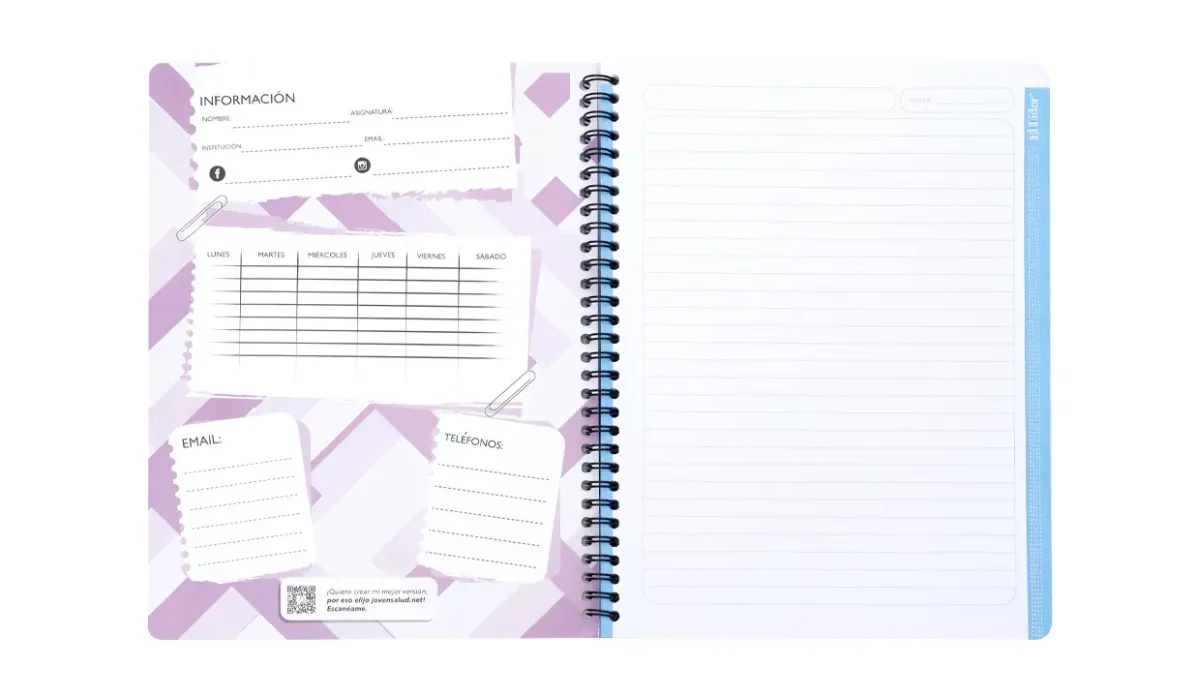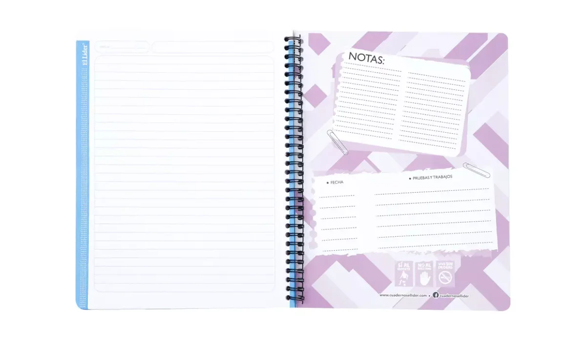 - Cuaderno de resortes de 100 hojas - 200 páginas.