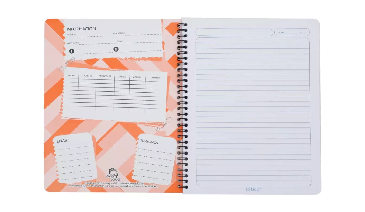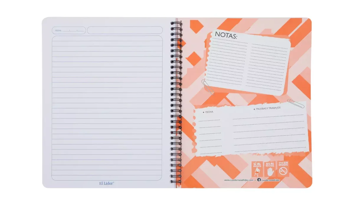 - Cuaderno de resortes de 100 hojas - 200 páginas.