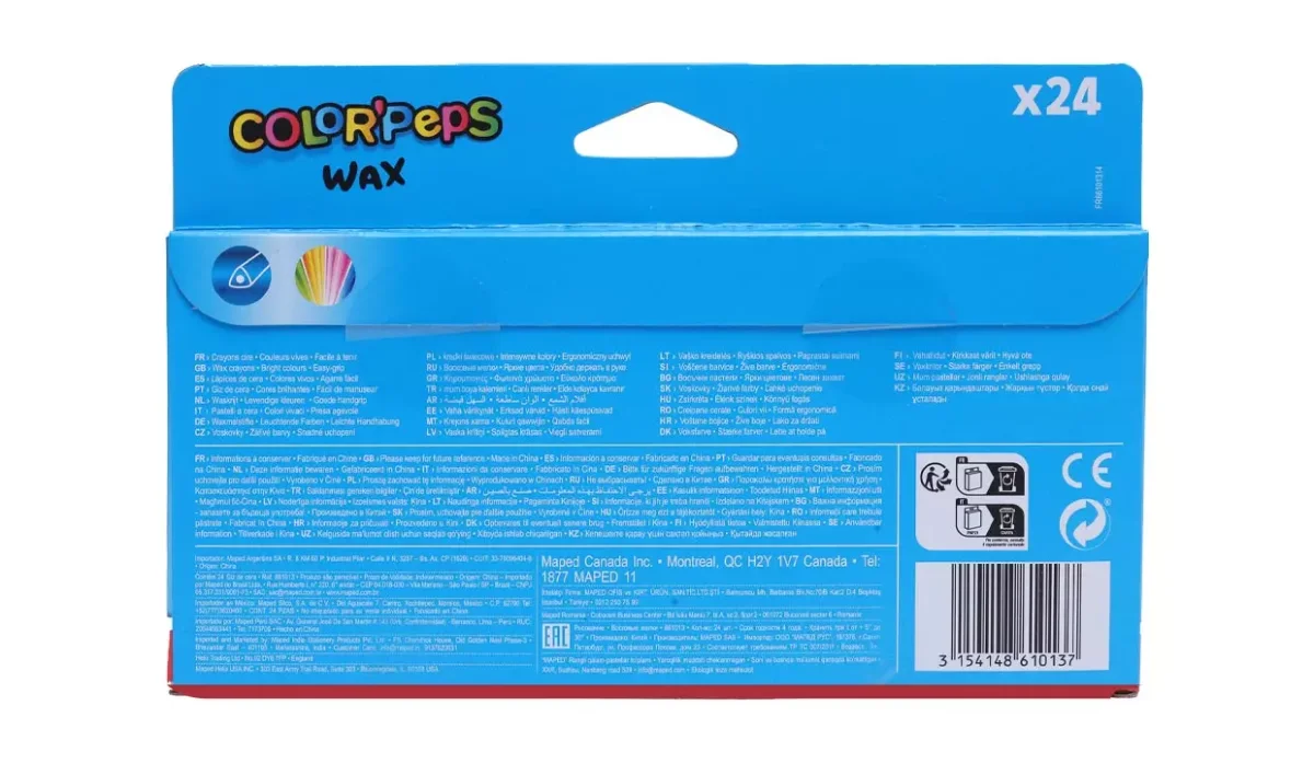 CRAYOLAS DE CERA TRIANGULARES MAPED 24 COLORES
