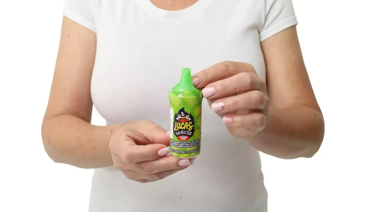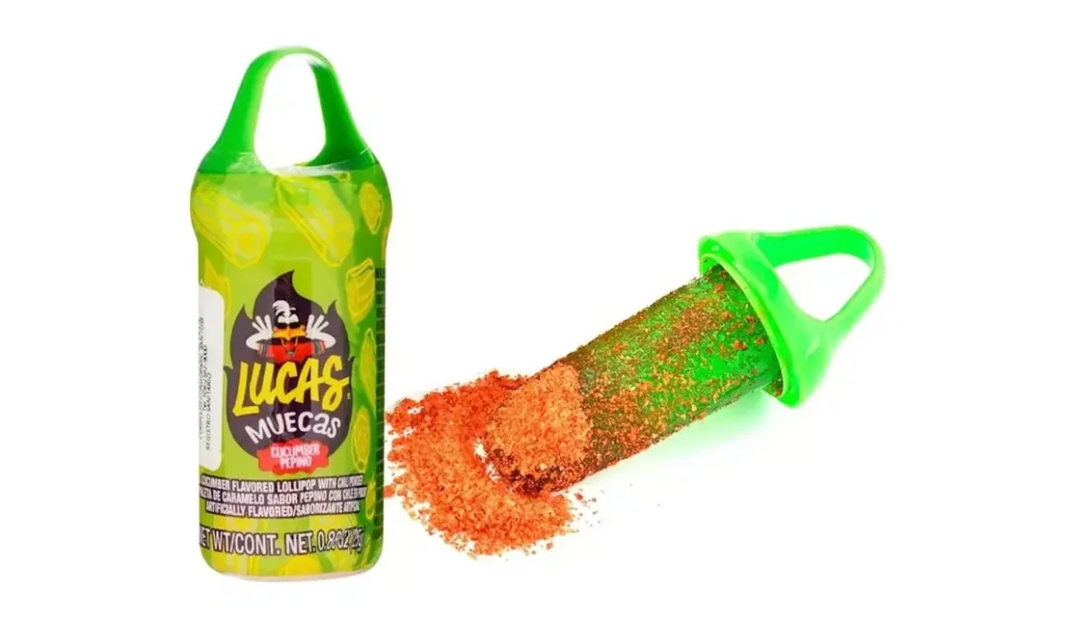 - Paleta de caramelo, azúcar, jarabe de maíz, ácido láctico, saborizantes naturales y artificiales, lactato de sodio, mono y glicéridos, aceite de soya, ácido cítrico, sal yodada, chile en polvo, maltodextrina de maíz, silicato de calcio.
