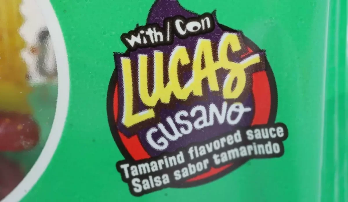 - Dulce enchilado en tiras sabor sandía y salsa sabor tamarindo.