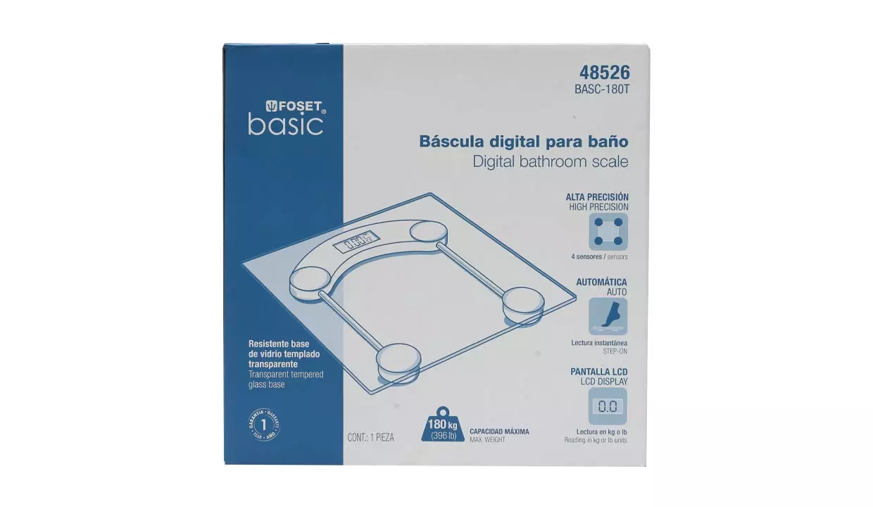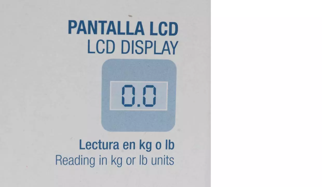 - Pantalla LCD con luz azul de fondo y números grandes de fácil lectura.