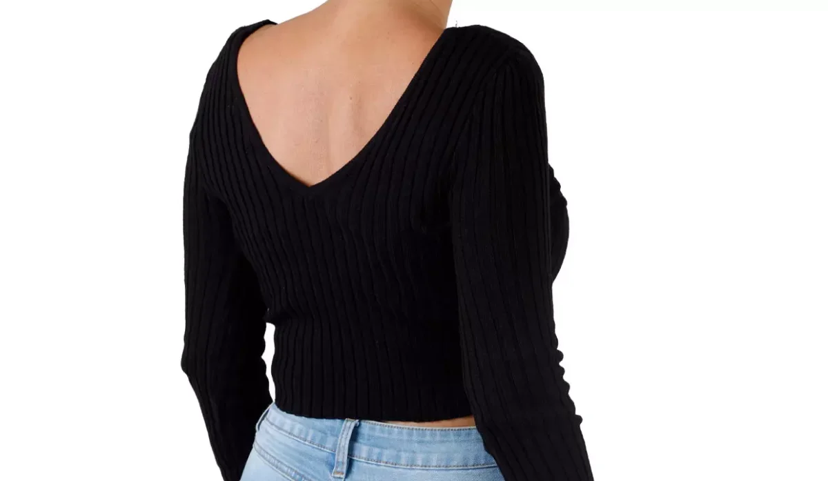 - Escote y espalda en V.