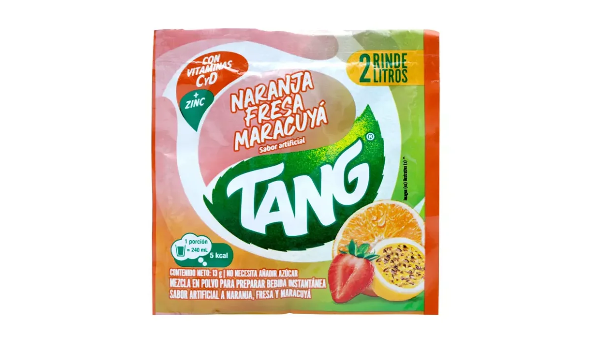 - Mezcla en polvo para preparar bebida instantánea sabor artificial a naranja, fresa y maracuyá.