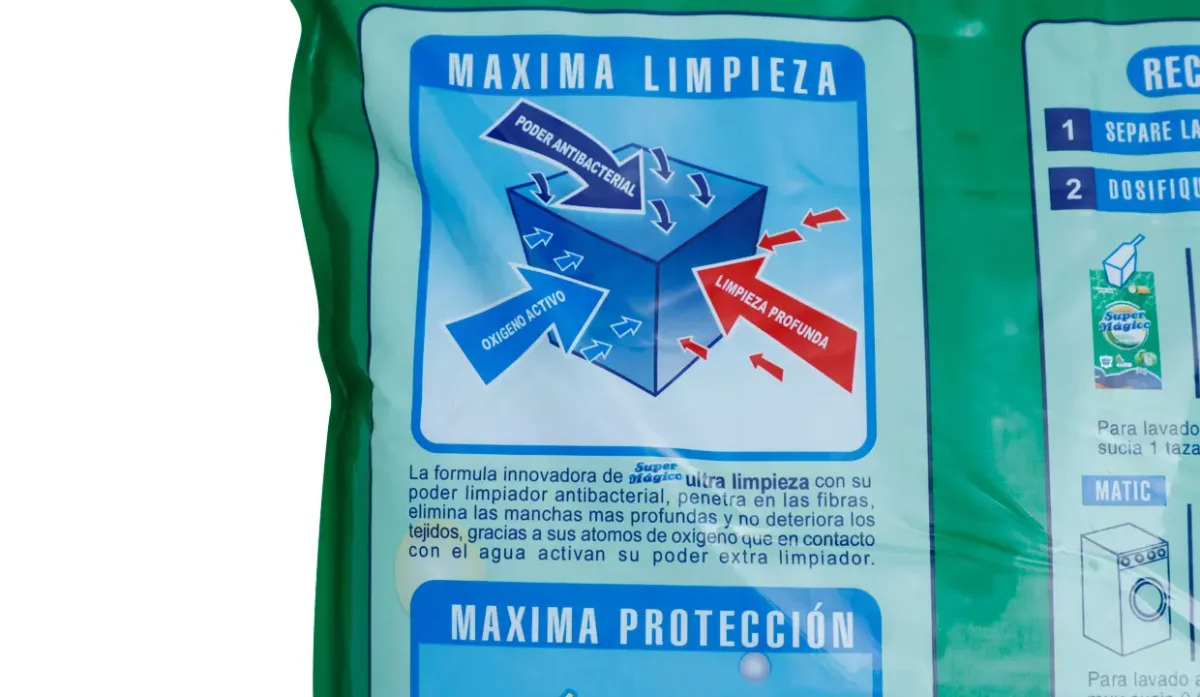 - La fórmula innovadora ultra limpieza con su poder limpiador antibacterial, penetra en las fibras, elimina las manchas más profundas.