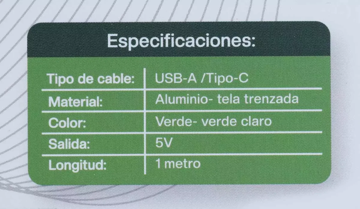 - Tipo de conector: USB tipo-A a USB tipo-C.