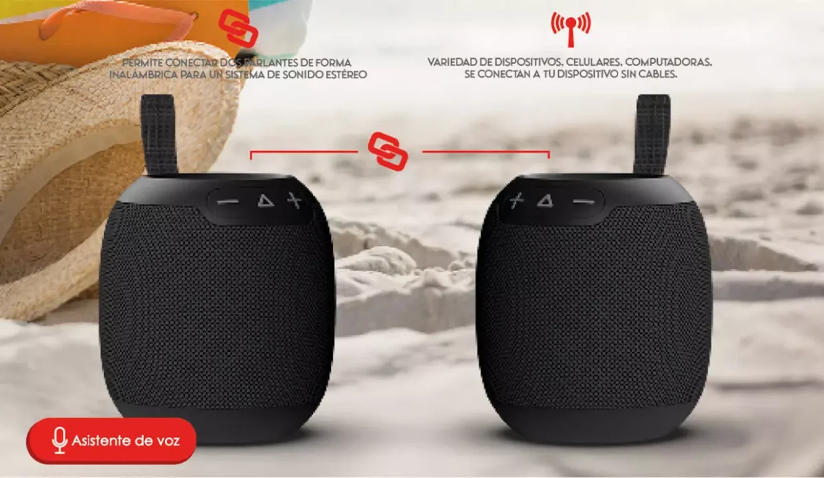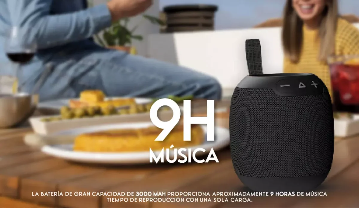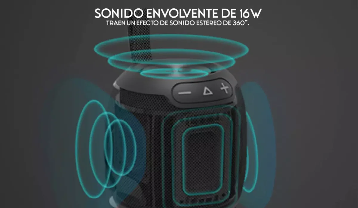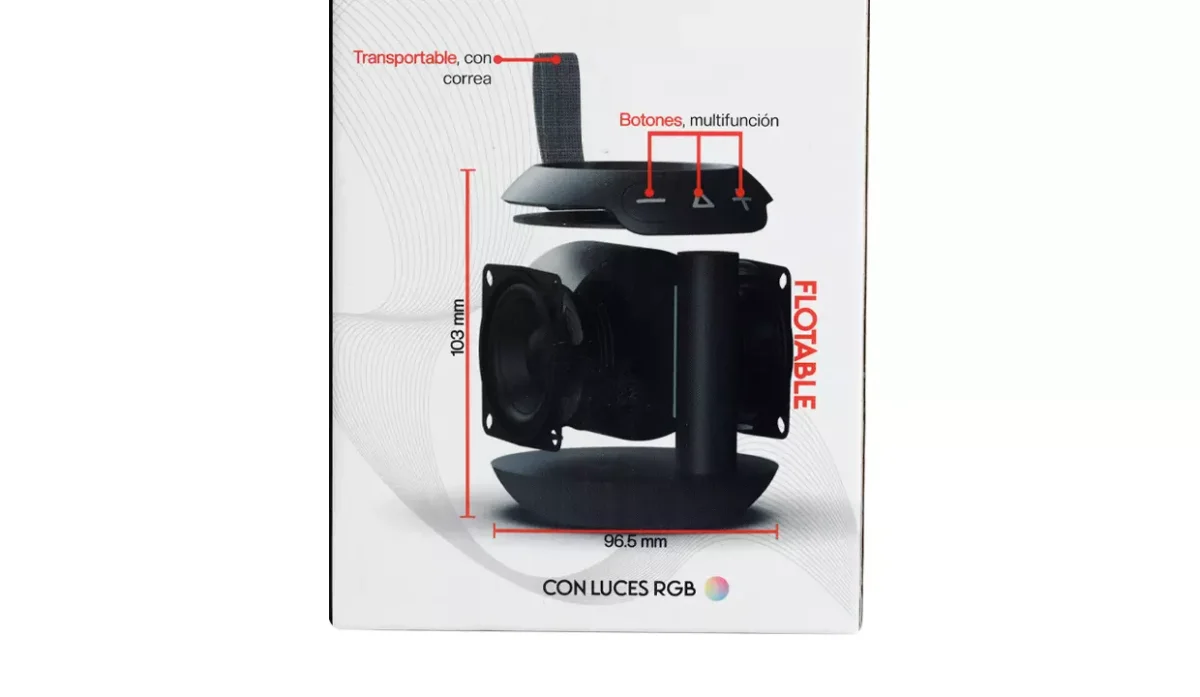 - Parlante portátil compatible con Bluetooth V5.3 para transmitir audio inalámbricamente.