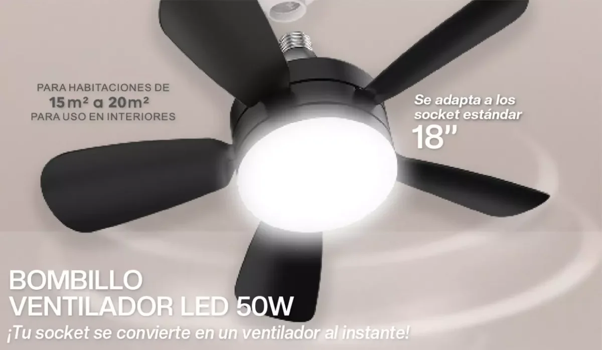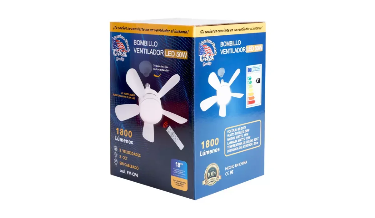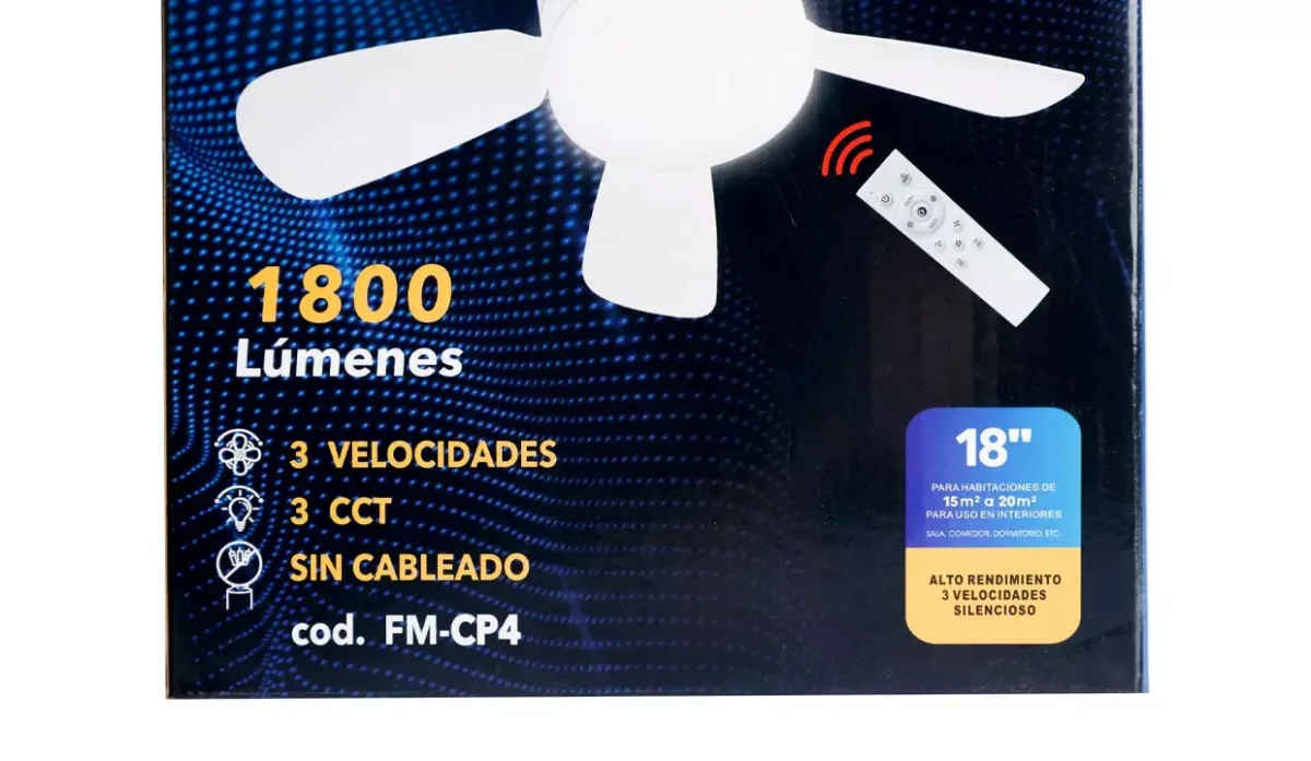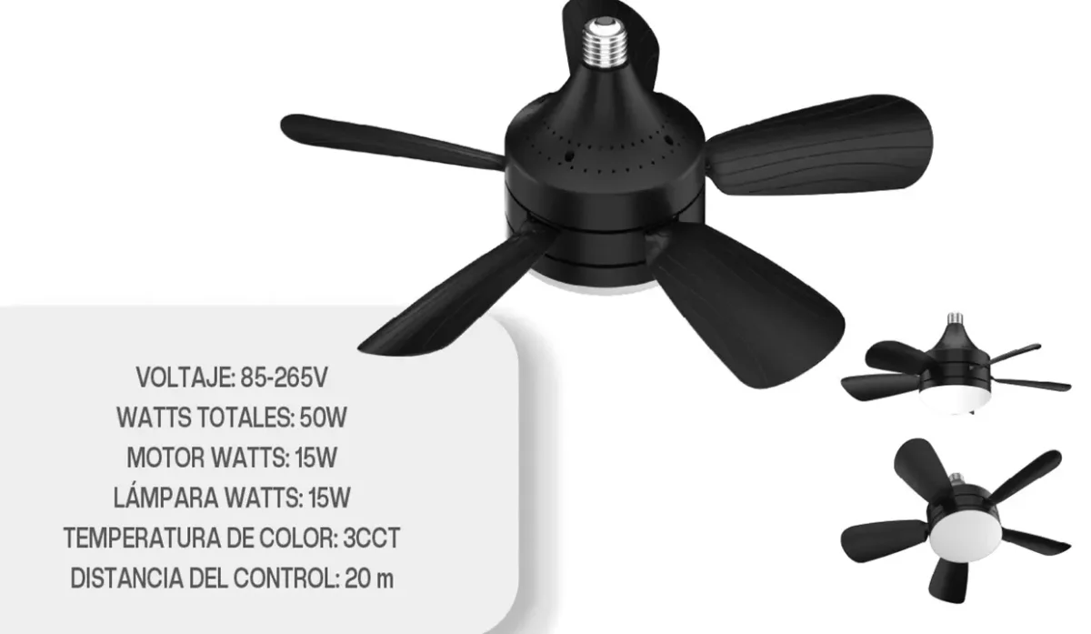 - El ventilador funciona con o sin luz, permite encender el ventilador y la luz por separado.