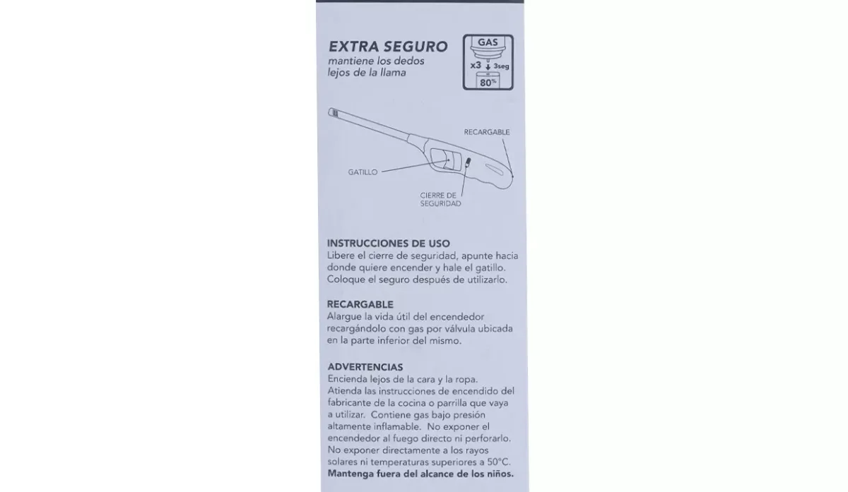 - Extra seguro, mantiene los dedos lejos de la llama.