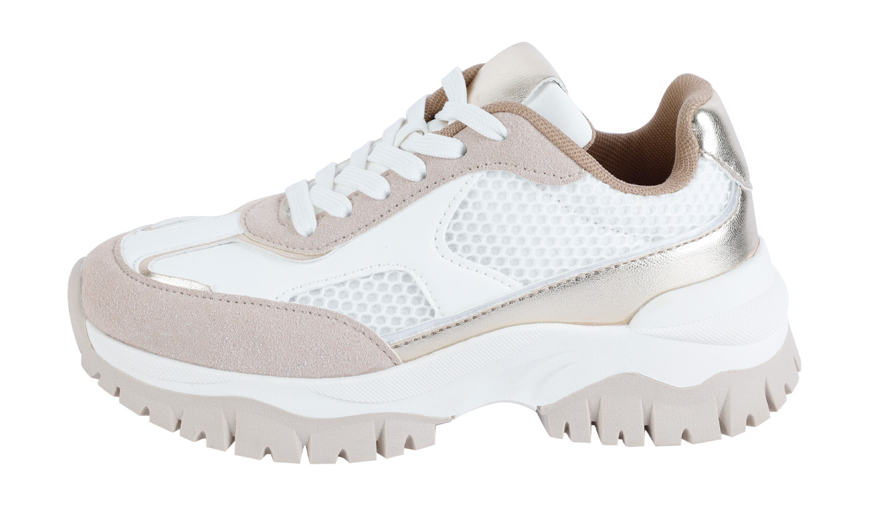 - Suela gruesa y elevada que ofrece soporte adicional y una pisada más firme.