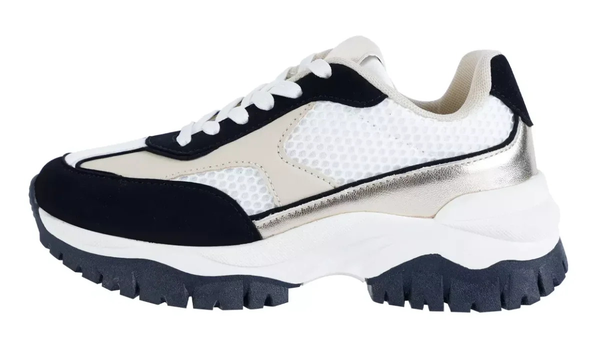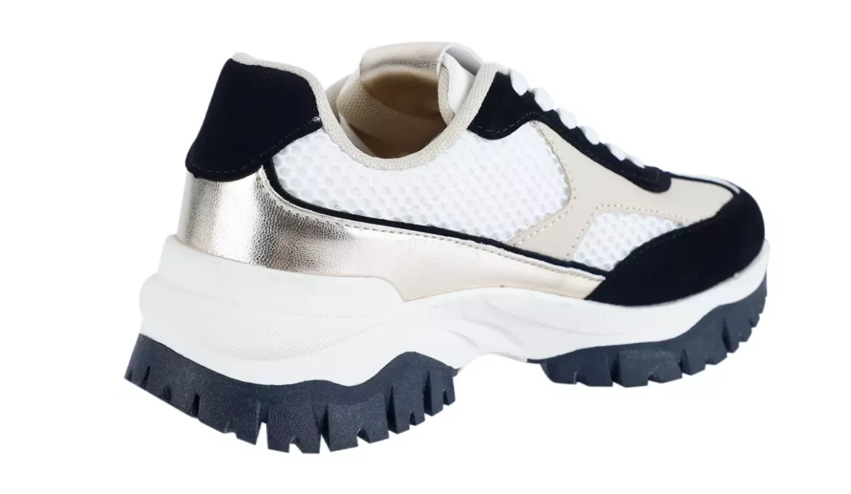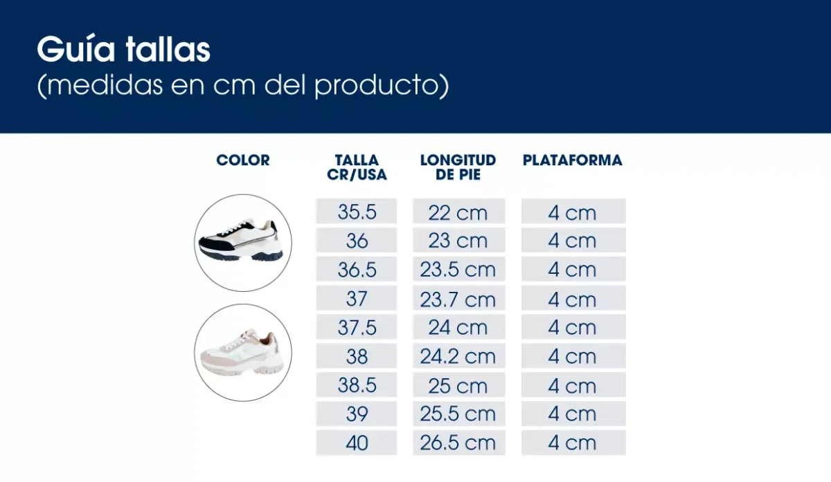 - Suela gruesa y elevada que ofrece soporte adicional y una pisada más firme.
