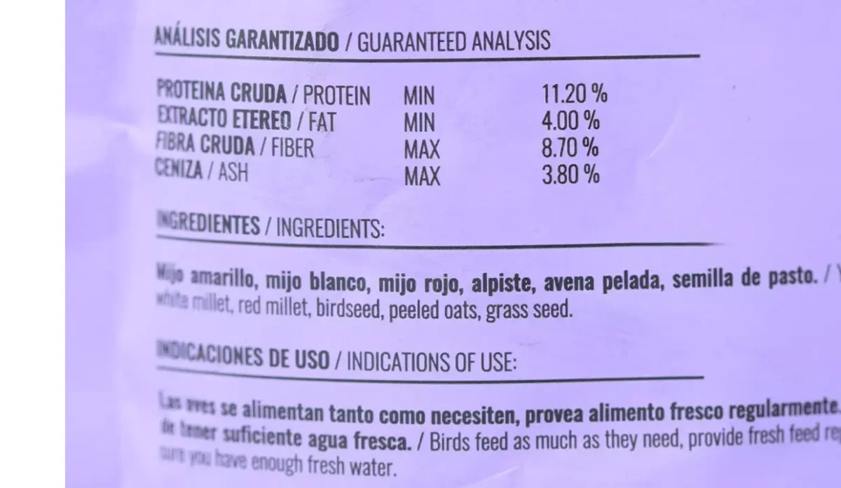 - Mijo amarillo, mijo blanco, mijo rojo, alpiste, avena pelada, semilla de pasto.