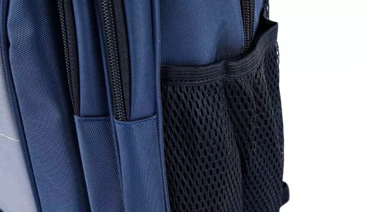 - Con bolsillos laterales de malla.