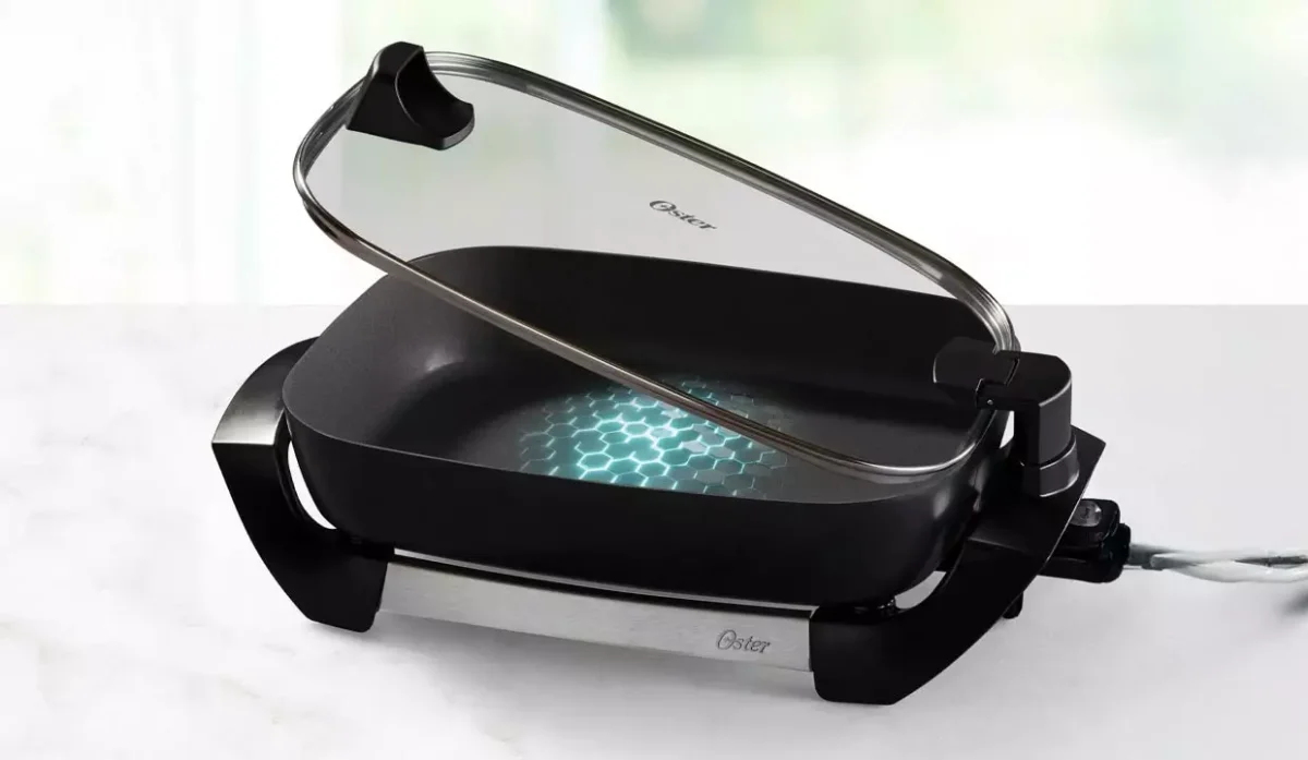 | Cocine deliciosas comidas para su familia de forma fácil y rápida con el sartén eléctrico con infusión de titanio Oster | |