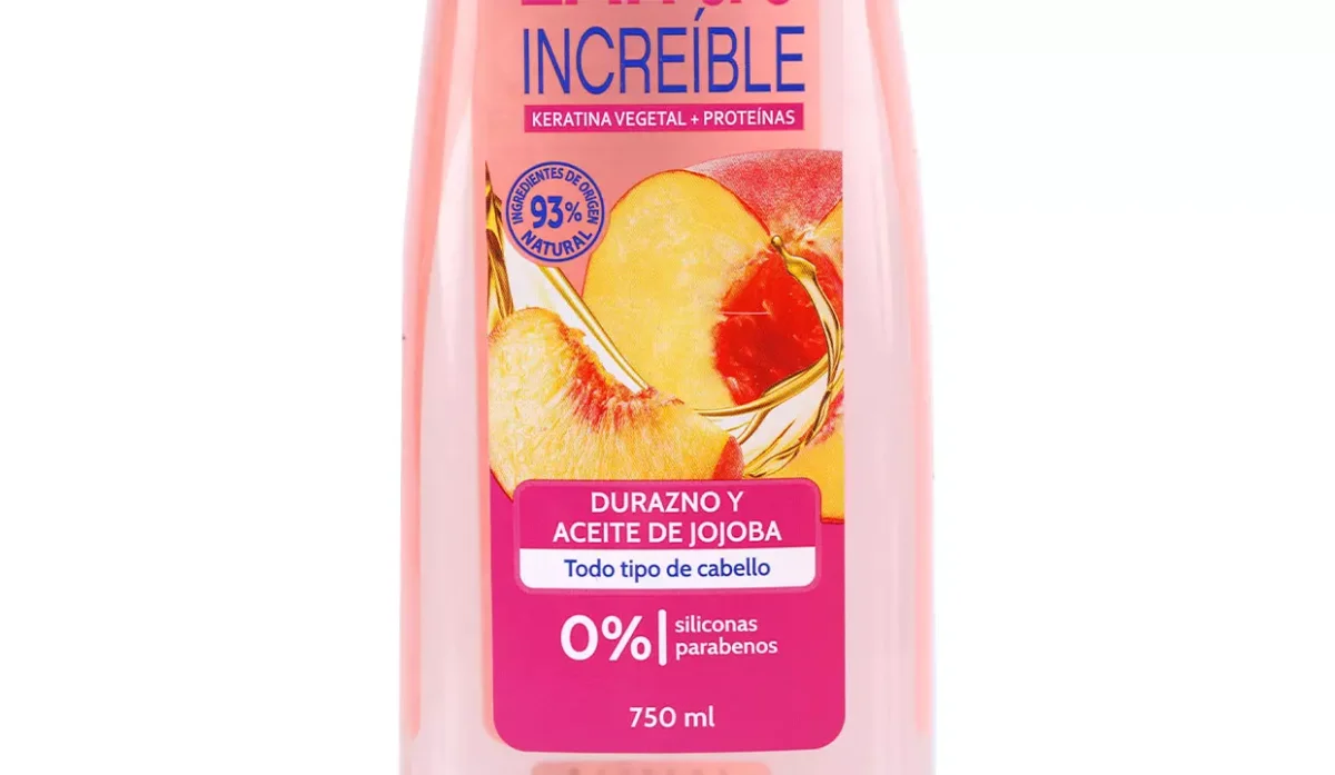 - Con extracto de durazno y aceite de jojoba que ayuda a combatir el cabello dañado, las puntas abiertas y menos quiebre.
