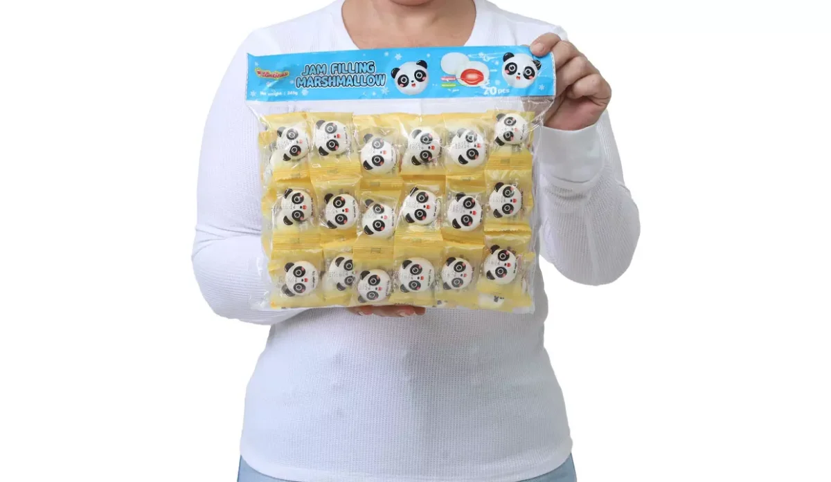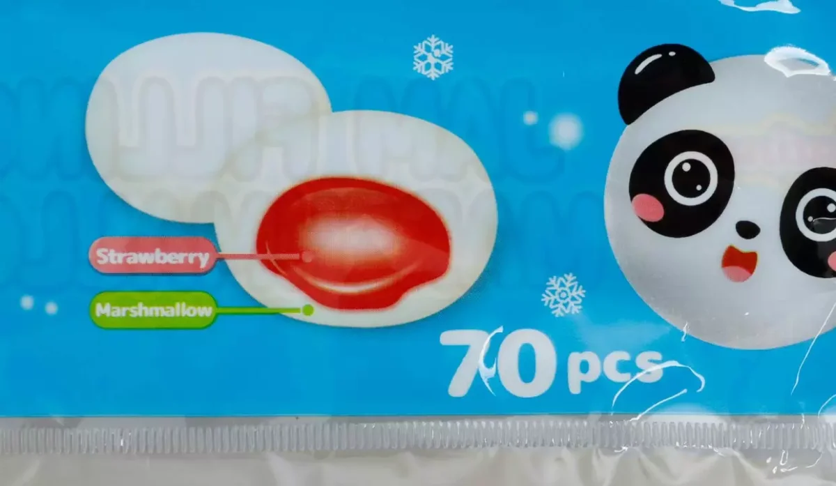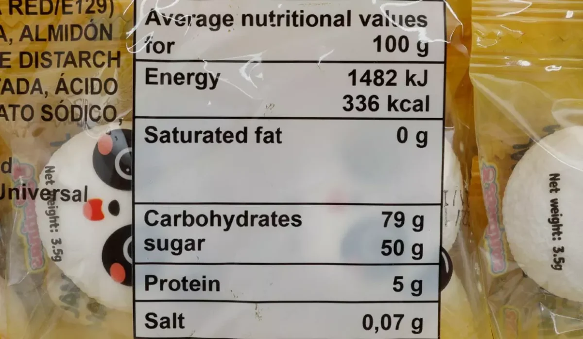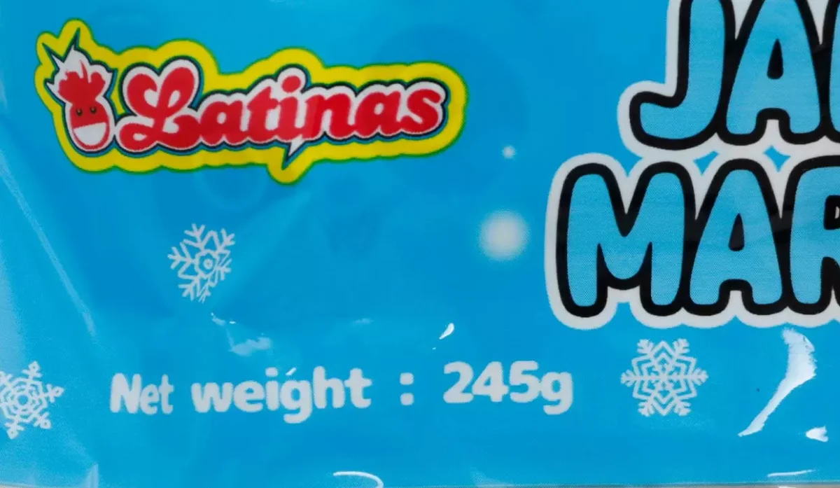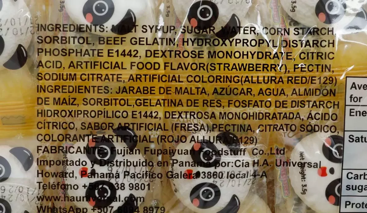 - Azúcar, jarabe de glucosa, ácido cítrico, sabores artificiales, colorantes artificiales rojo 40, azul 1.