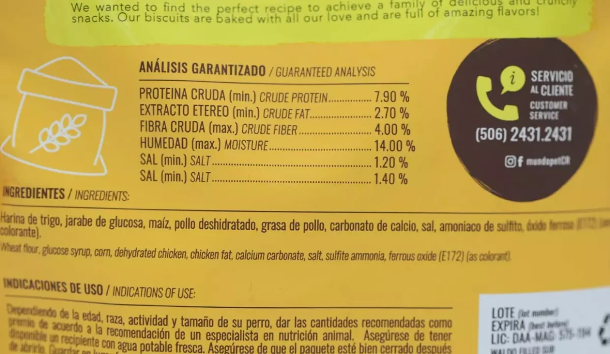 - Harina de trigo, jarabe de glucosa, maíz, pollo deshidratado, grasa de pollo, carbonato de calcio, sal, amoniaco del sulfito, óxido ferroso (como colorante).