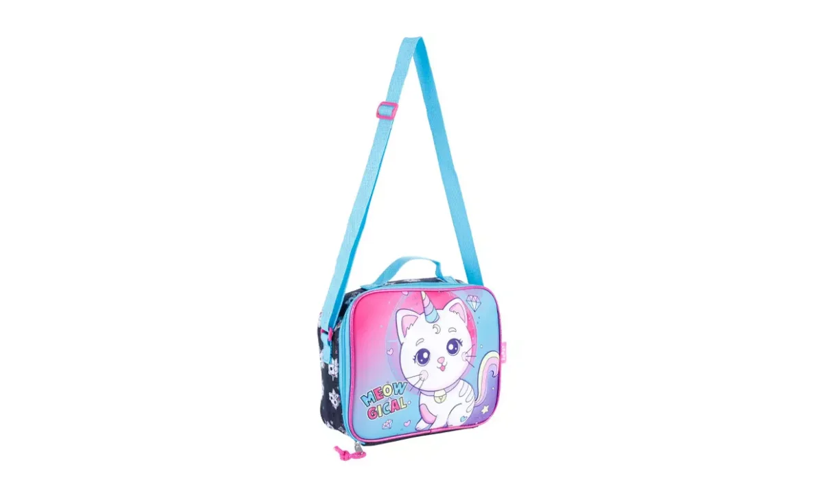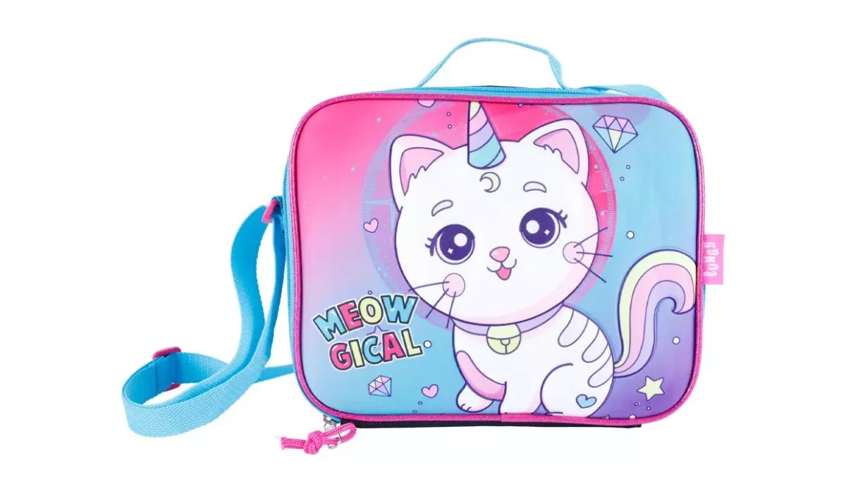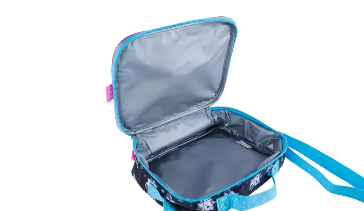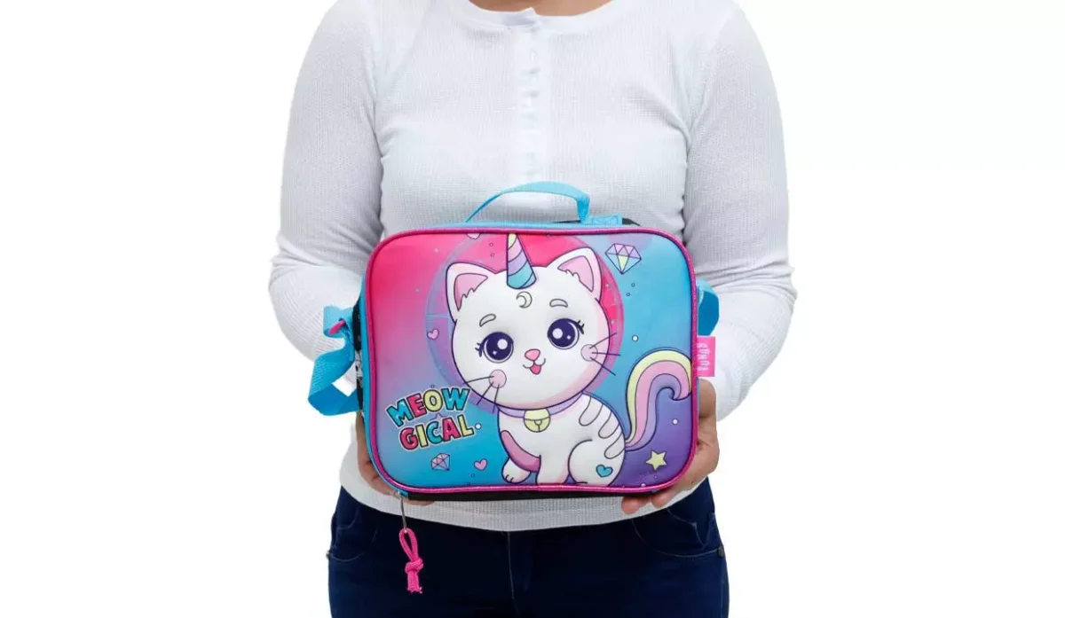 - La abertura en ángulo permite que la lonchera quede plana para usarse como bandeja.