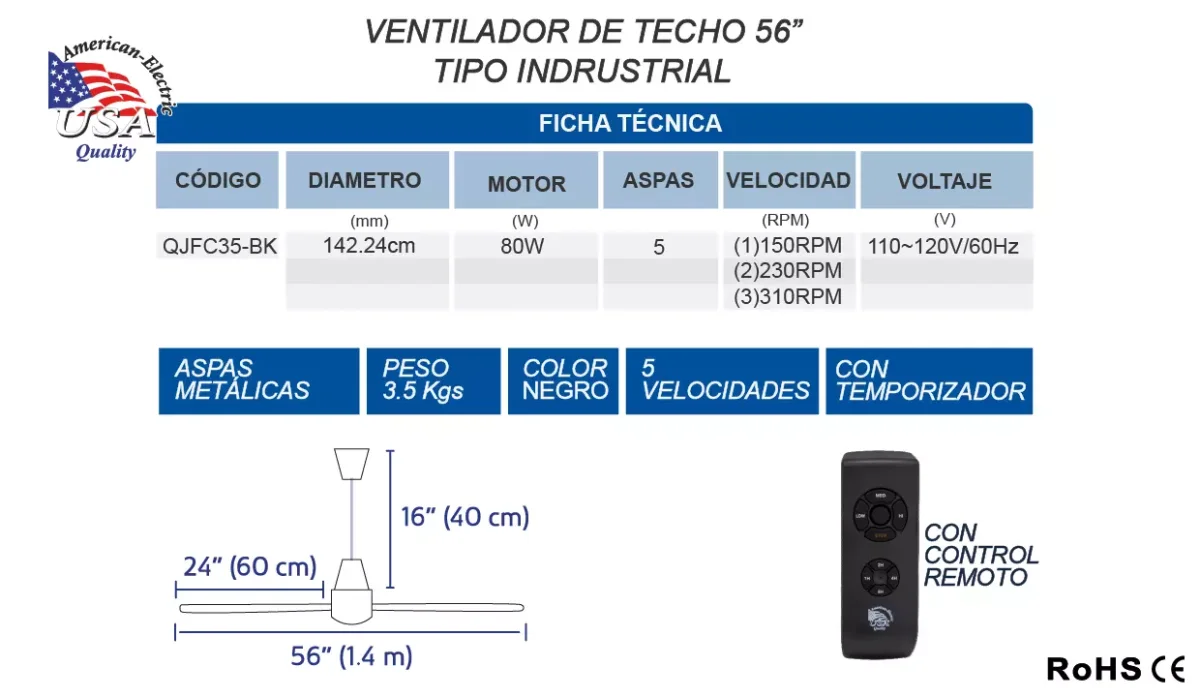 - Modelo: QJFC35-BK.