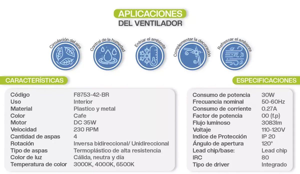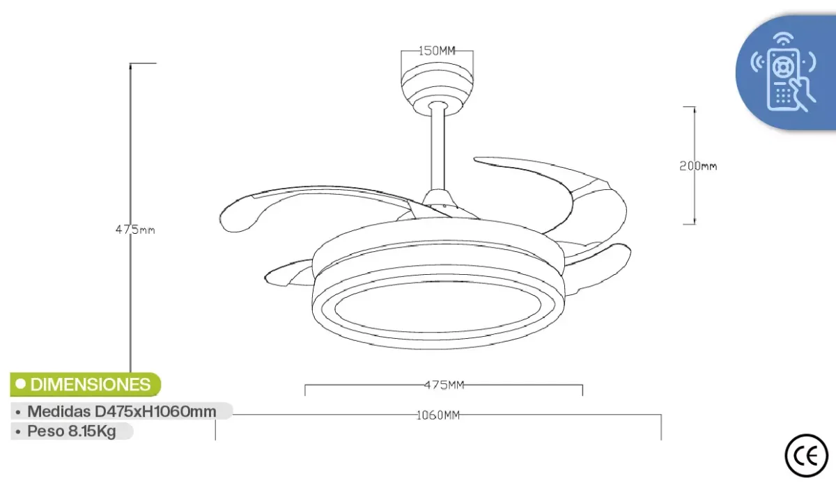 - 106 cm de diámetro con las aspas x 47,5 cm de alto.