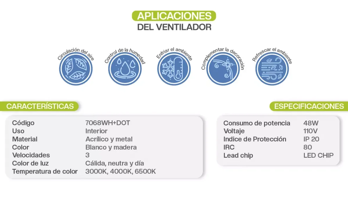 - Nivel de atenuación de luz ajustable (cálida 3000K, neutra 4000K y día 6500K).