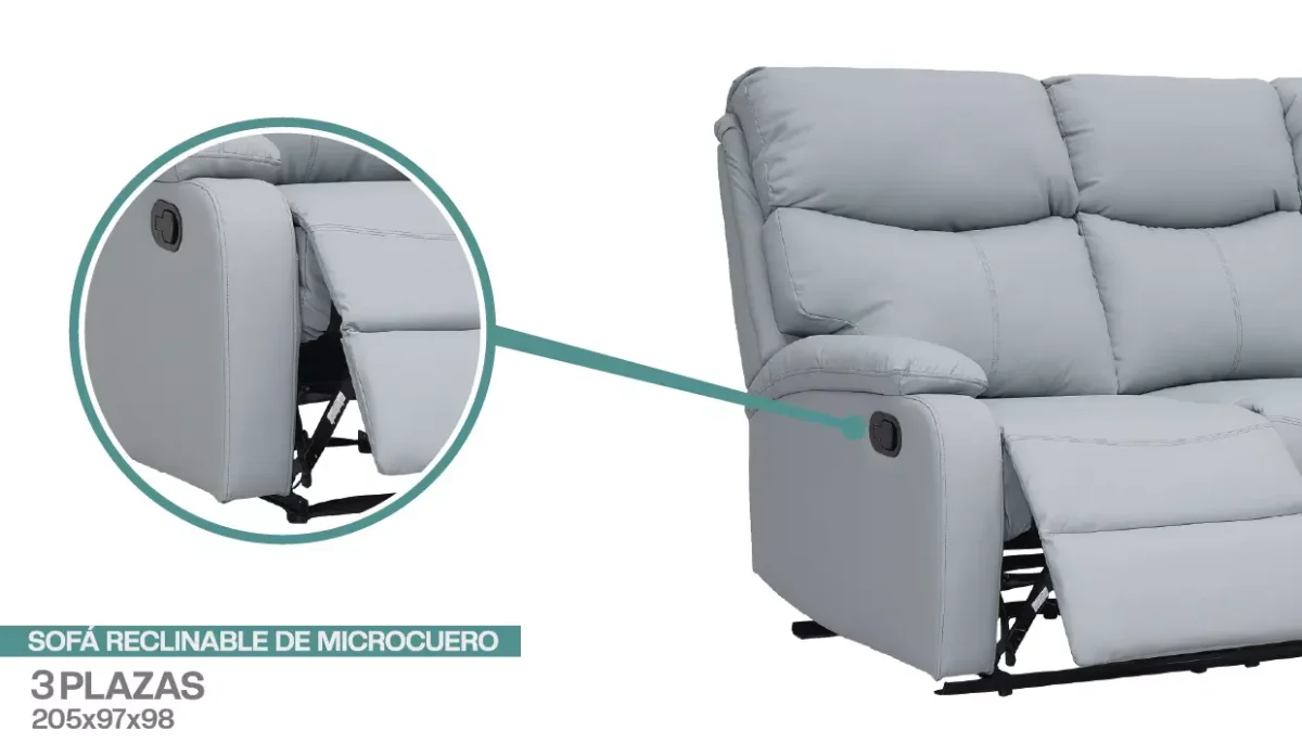 - Cuenta con descansa pies y respaldo reclinable (asiendo del medio no reclinable).