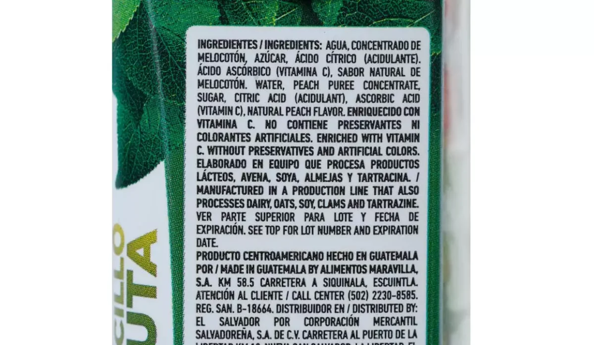 - Elaborado en equipo que procesa productos lácteos, avena, soya, almejas y tartrazina.