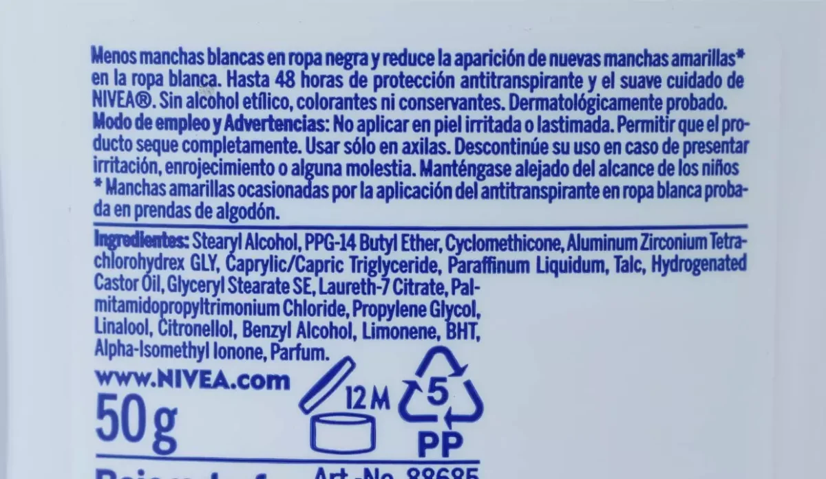 - Fórmula 5 en 1 anti: olor, sudor, manchas, residuos e irritación.
