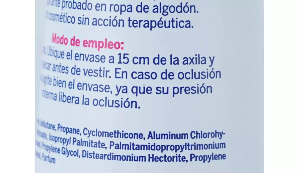 - Fórmula 5 en 1 anti: olor, sudor, manchas, residuos e irritación.