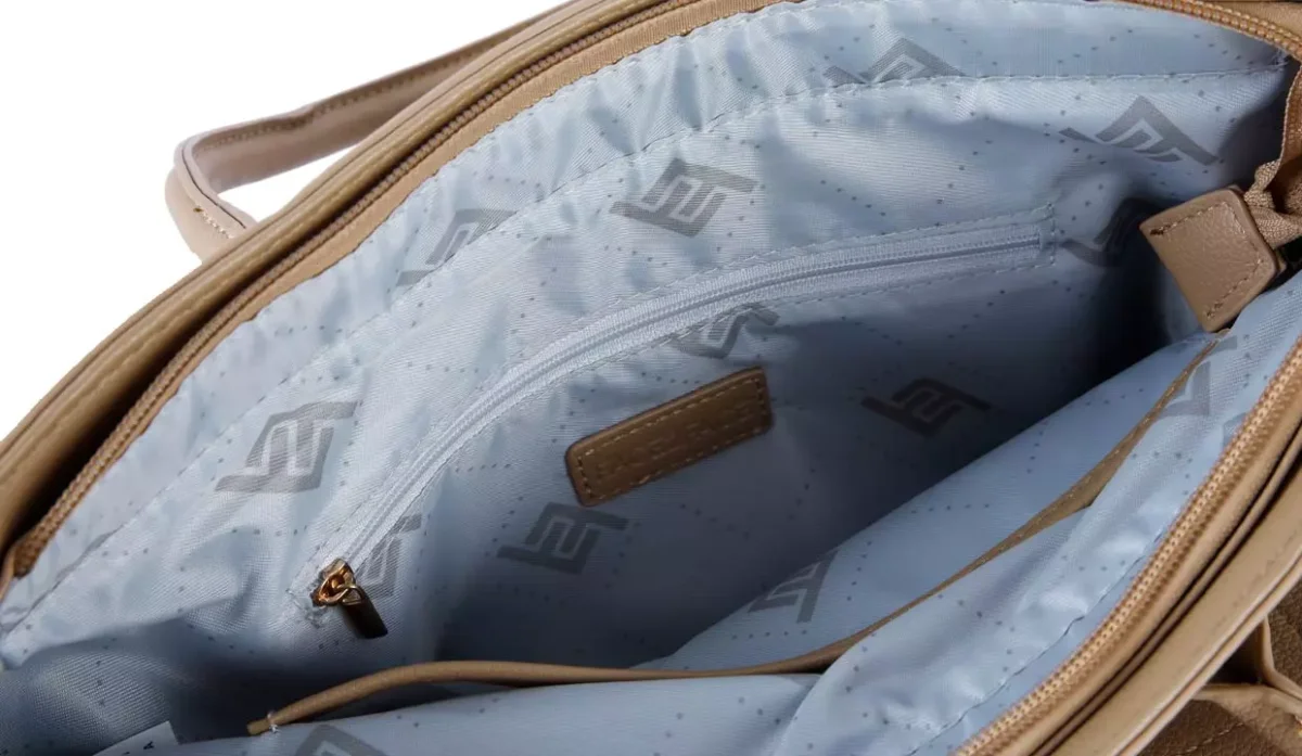 - Compartimentos internos y externos con cierre de zíper.