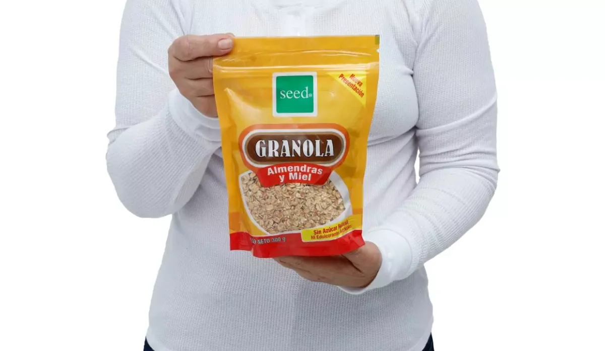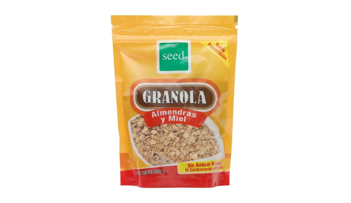 - Avena integral, miel de abeja, almendras, harina integral de trigo, ajonjolí, coco deshidratado, afrecho de trigo, canela, vainilla y sal marina.