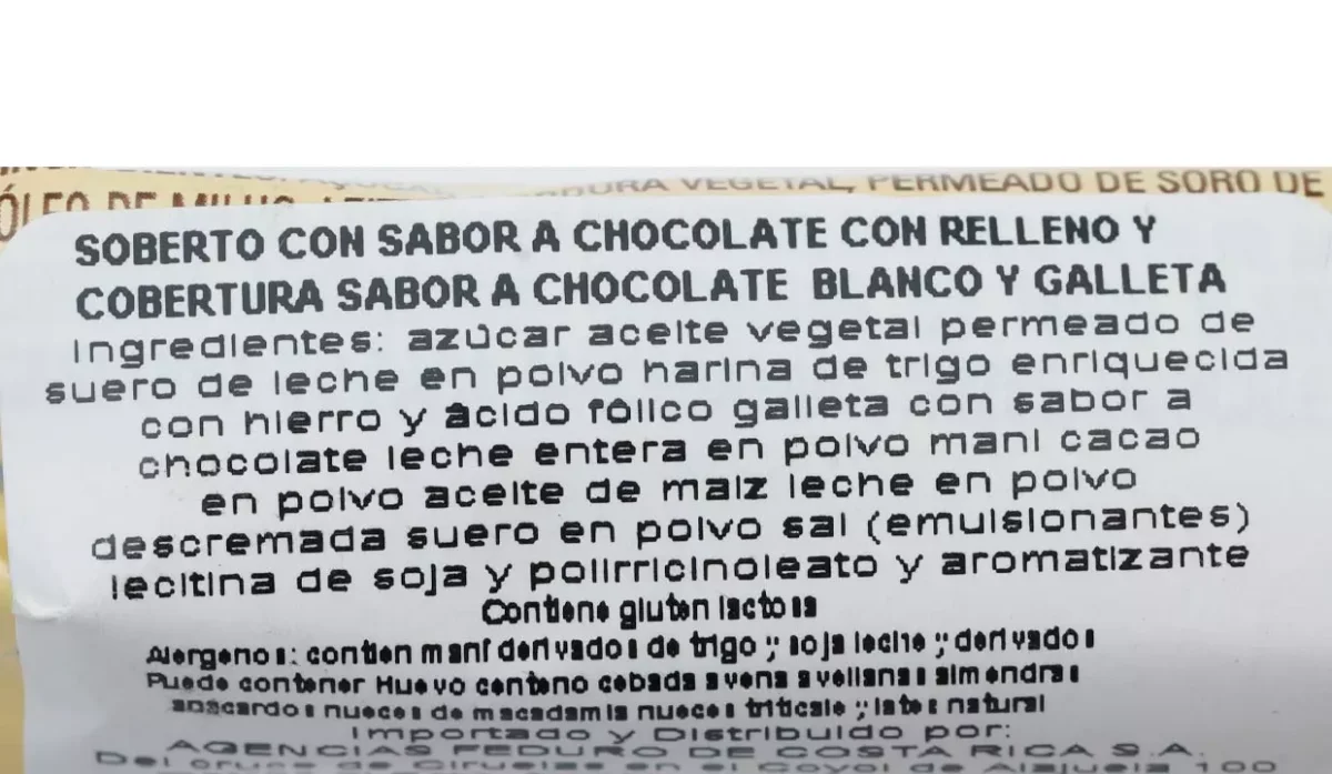 - Azúcar, aceite vegetal, permeado de suero de leche en polvo, harina de trigo enriquecida con hierro y ácido fólico, galleta con sabor a chocolate, leche entera en polvo, maní, cacao en polvo, aceite de maíz, leche en polvo descremada, suero en polvo, sal (emulsionantes), lecitina de soya, polirricinoleato y aromatizante.