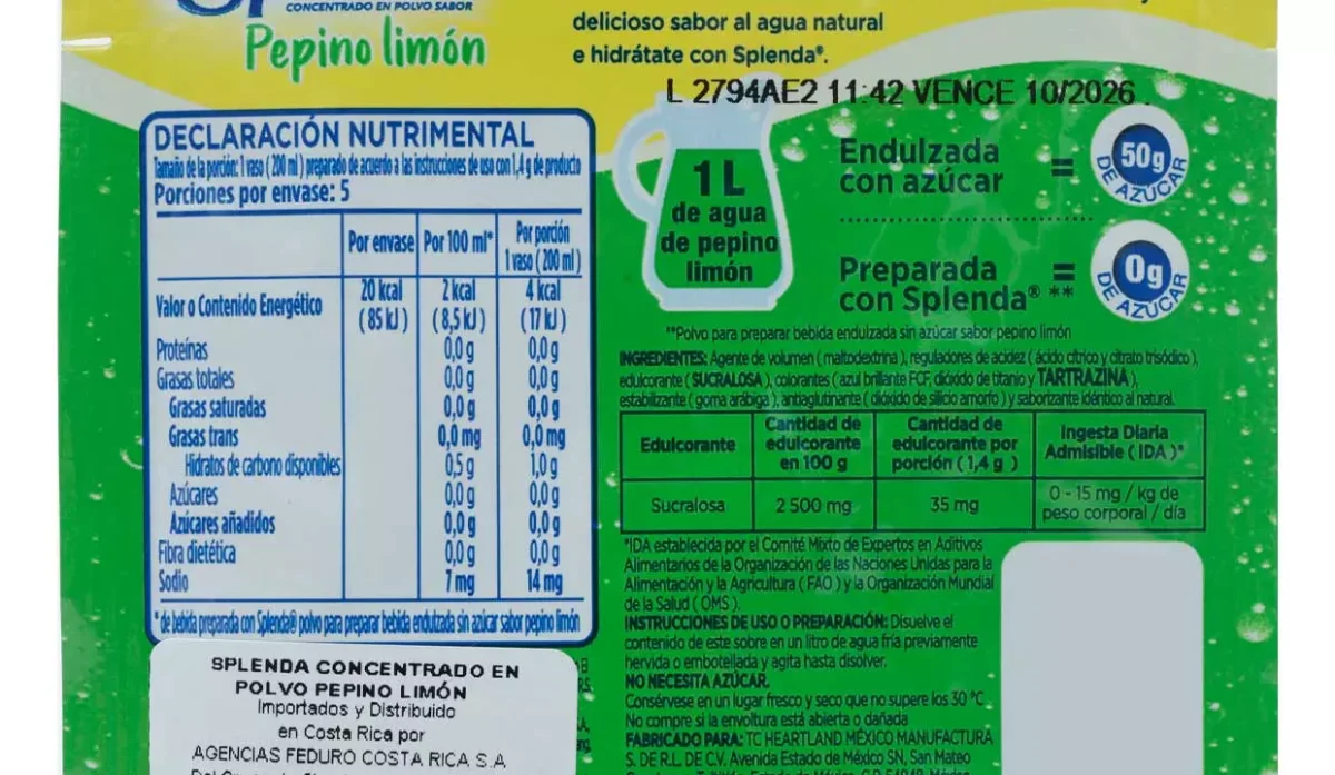 - Mezcla en polvo para preparar bebida endulzada sin azúcar sabor pepino limón.