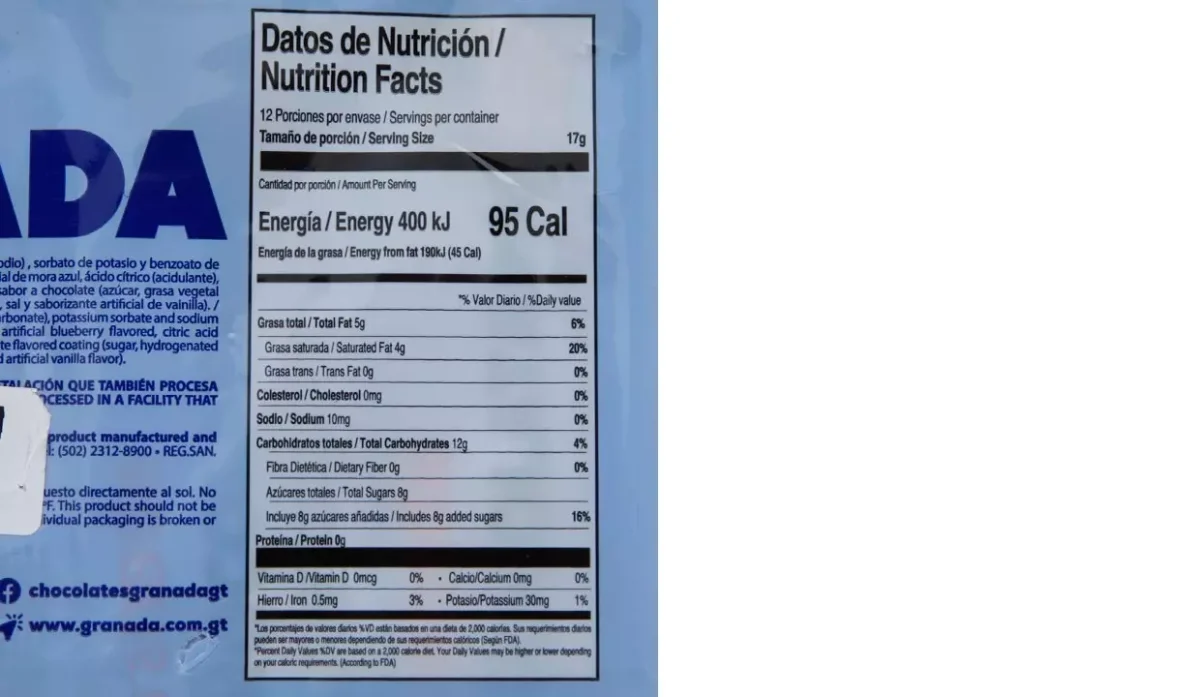 - Producto procesado en una instalación que también procesa leche, nueces y maní.