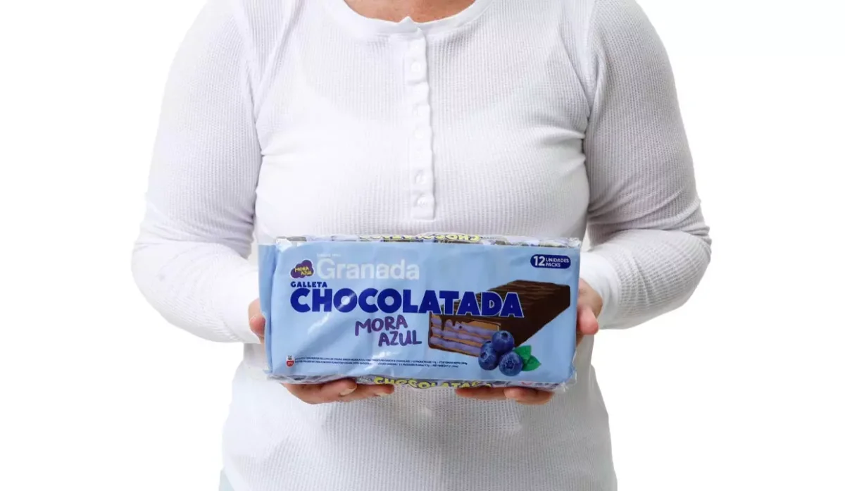 - Galleta tipo wafer rellena de crema sabor mora azul con cobertura sabor a chocolate.