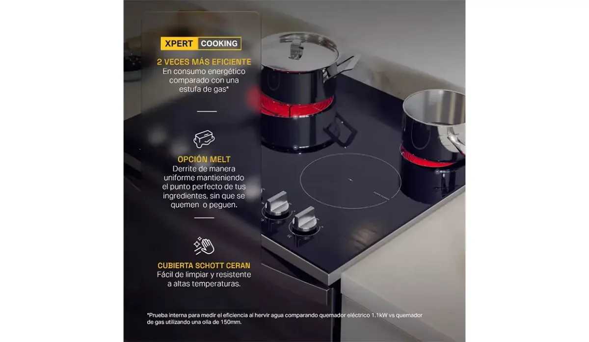 | 4 elementos de calor : | - 2 quemadores super de 9" de 2500w