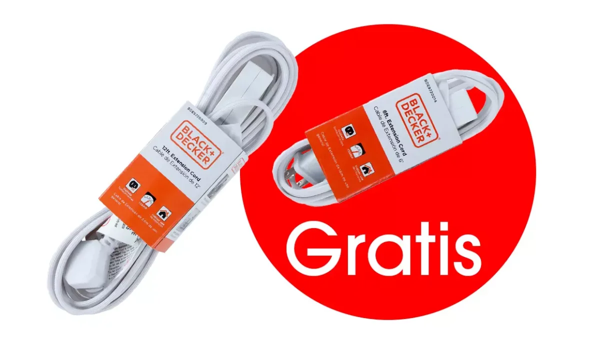 - Gratis: extensión eléctrica para interiores Black+Decker 1,8 metros.