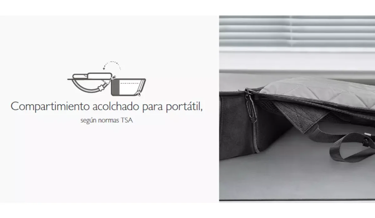 - El compartimento separado para portátil de 14,1" (diseño delgado) con interior ultra-acolchado cumple con las normas TSA y cierres resistentes al agua.